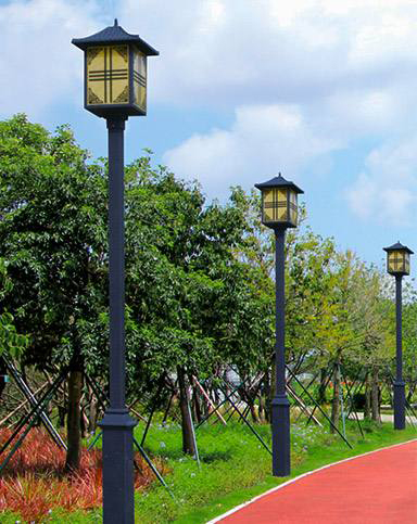 太阳能镇原庭院灯以太阳辐射能为能源,白天利用太阳能电池板给蓄电池充电,晚上蓄电池给庭院灯光源供电使用,无需复杂昂贵的管线铺设,可任意调整灯具的布局,安全节能无污染,充电及开/关过程采用智能控制,光控自动开关,无需人工操作,工作稳定可靠,节省电费,免维护。